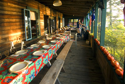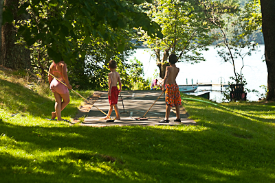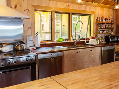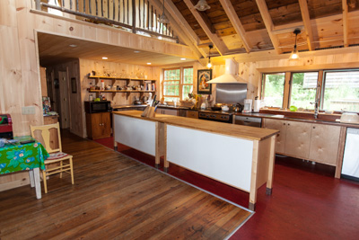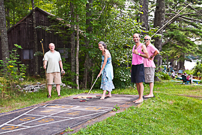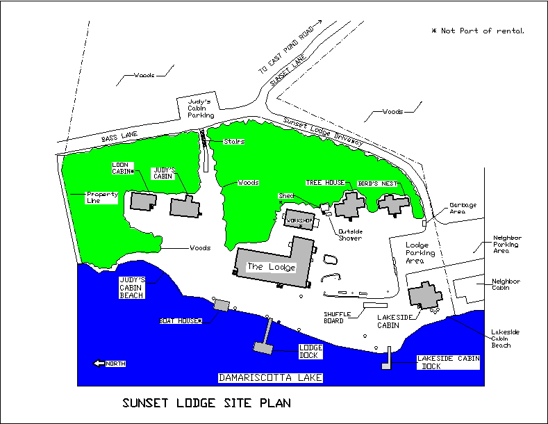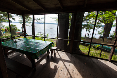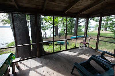 The property includes a large Lodge and four smaller cabins. The five bedroom, four bath Lodge has a large common room where everyone can gather for evening games or sings, and a smaller living room with fireplace for more intimate gatherings. There is a large well-equipped kitchen that is great for groups. The four cabins in addition to the lodge make it ideal for family reunions, retreats and groups who enjoy vacationing together but also having some privacy. Each cabin has its own kitchen, bathroom and screened porch. There are two wonderful outside showers which provides views of the lake. The lawn provides plenty of space for badminton, croquet, shuffleboard, barbeques and relaxing and contemplating the lake.