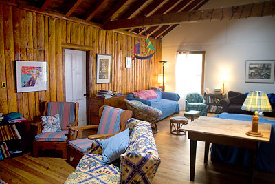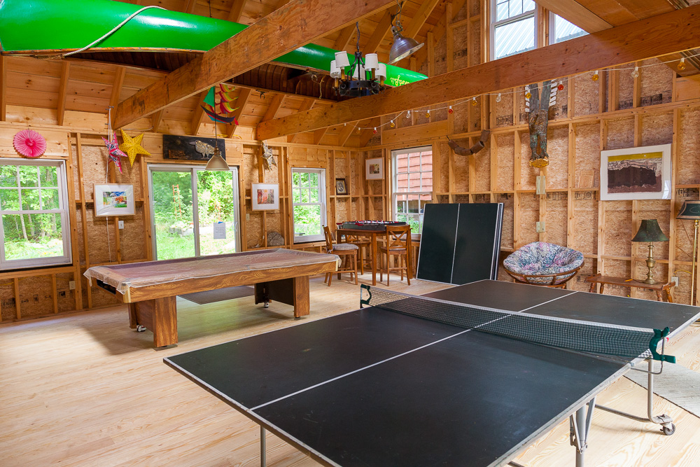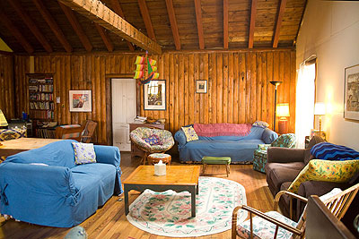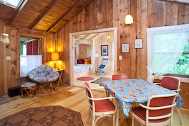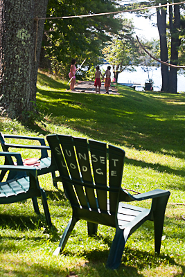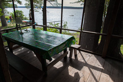 Sunset Lodge is ideal for small retreats, conferences, or reunions. The best month for this is September or the first weeks in October because of availability. The setting is a rustic, charming 1919 fishing camp on the edge of beautiful Lake Damariscotta, 1 hour from Portland. The lodge and cabins have a total of 13 bedrooms that will sleep up to 26 people. The grounds are lovely - level and grassy for sitting, croquet, or badminton. Parking is ample and easy. The lodge's 80' long screened porch overlooks the lake. A big common room is perfect for group meetings. Each of the units has a kitchen and bath; the Lodge has a larger well equipped kitchen with two refrigerators and two dishwashers. There are 2 big private docks and a beach for swimming, fishing, and loon gazing, plus kayaks and canoes available for an additional rental fee. The Lodge has high speed internet with wifi. There is an additional large room for gatherings and games with pool and ping pong tables.