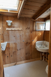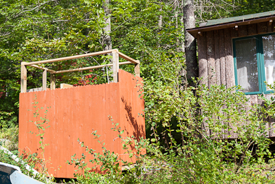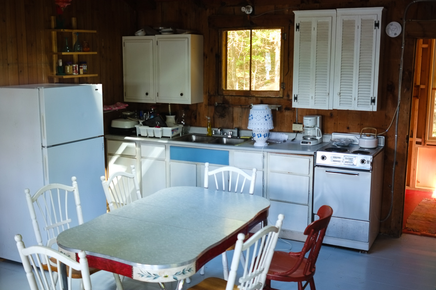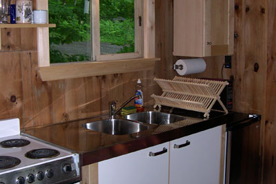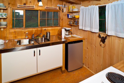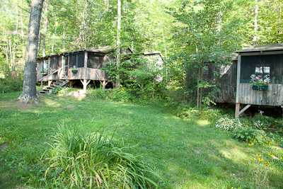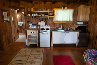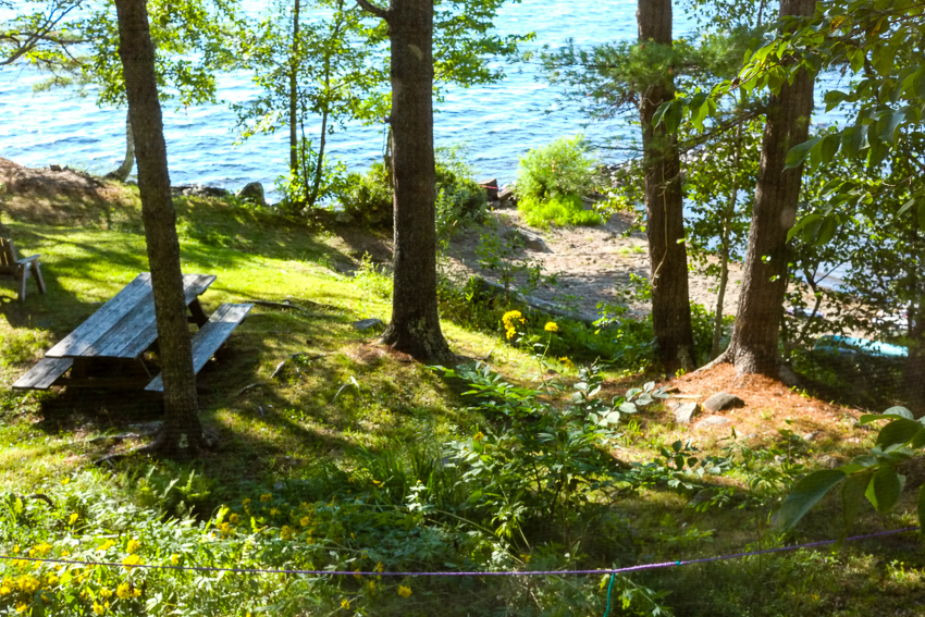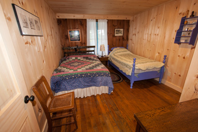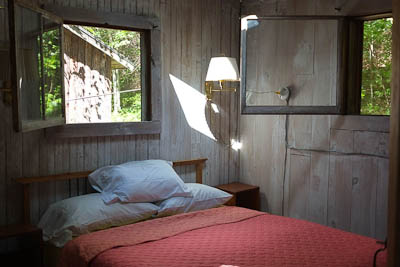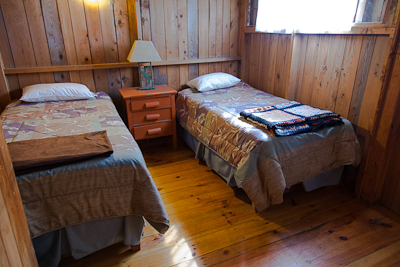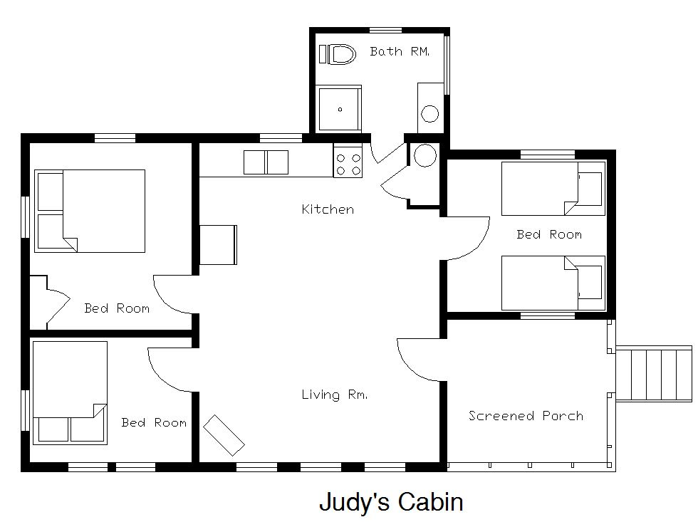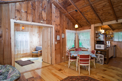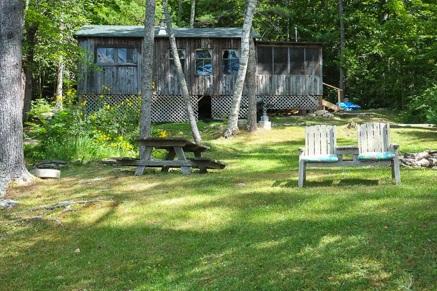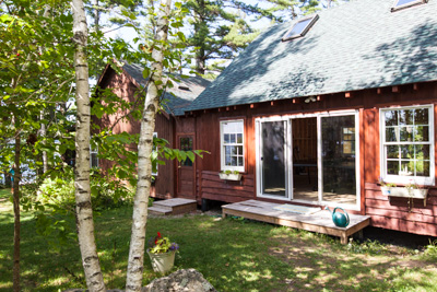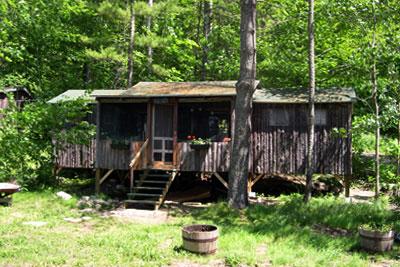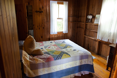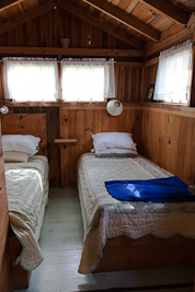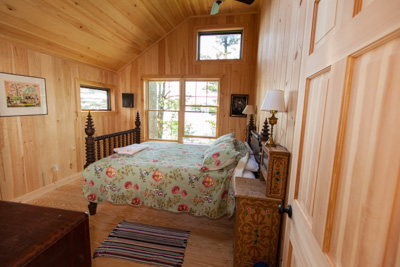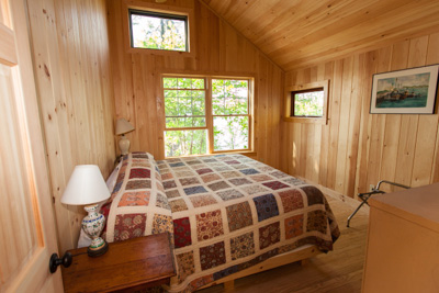 Judy's Cabin is a 680 sq. ft. cabin just above the beach with a kitchen, three bedrooms, a new bathroom and a 95 sq. ft. screened porch. There is a new outside shower next to it with views of the lake and woods.
