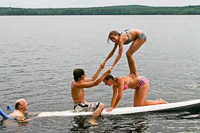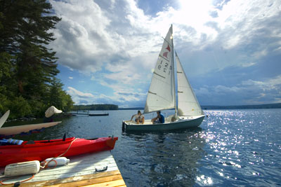 Lake Damariscotta is one of central Maine's most pristine lakes. Available at the lodge are canoes, kayaks, standup paddle boards and a Sunfish, for use from the beach or two docks while motorboats for fishing or water skiing may be rented in the area and moored off shore. The lake is a great spot for windsurfing. Take off from the dock, the lake is a mile and a half across and ten miles long.