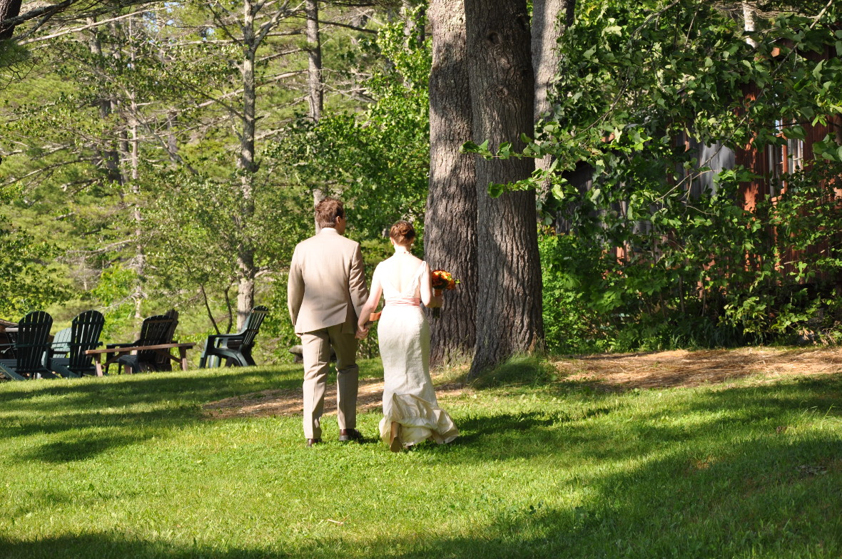Weddings have been taking place at Sunset Lodge since 1923. It is the perfect venue for an outdoor, rustic, "destination" wedding. With open spaces, water views, beautiful sunsets, and onsite accommodations for 26, Sunset Lodge is an ideal spot for a wedding and will provide beautiful memories for a lifetime. June and September are ideal times for a wedding at Sunset Lodge. An additional 24 can stay in the adjacent Sunset Cabins, owned by our neighbor (it was originally all one property). This means that up to 50 friends and family can stay on-site and share in the celebrations. To maximize your privacy and enjoyment we recommend that you rent the adjacent Sunset Cabins as well, www.sunsetcabinsmaine.com, (price not included below) for, at a minimum, the day before to the day after the wedding ceremony. Contact us to discuss your plans and for additional information.